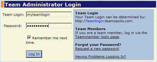 Every team site has a Unique Team Login name. This login name is used to access your team site. It is the same for for the public to access, teammembers or team administrators.